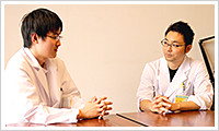 藤田:精神科医として外来、入院、当直業務などを行っています。最初の3ヶ月間は、上級医の先生に指導を仰ぎ、副主治医として入院患者様を担当したり、外来見学を行っております。夏頃からは、主治医として病棟業務をこなしつつ、外来も始まります。患者様一人ひとりと真剣に向き合うことで、自分も成長していければと思いながら仕事をしています。